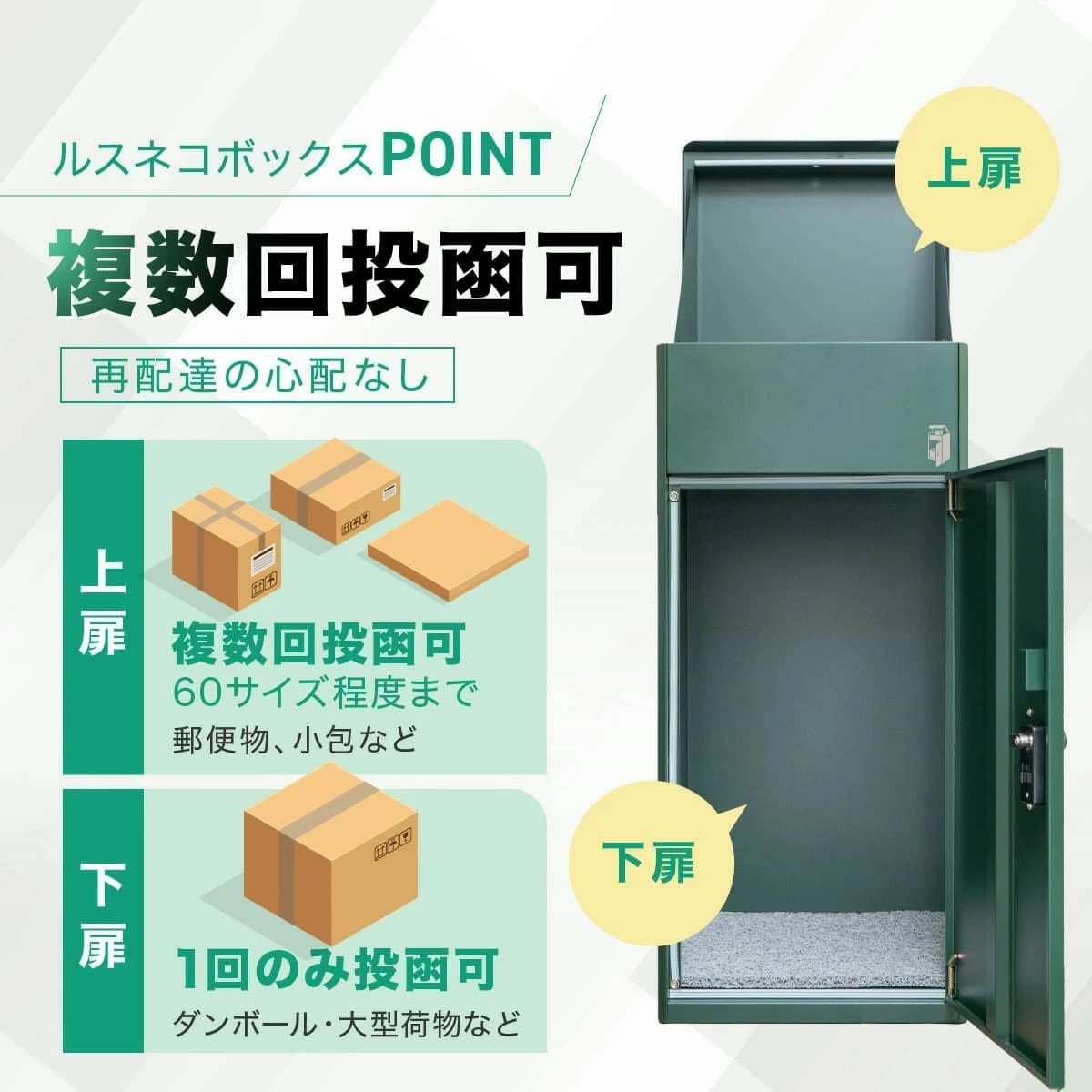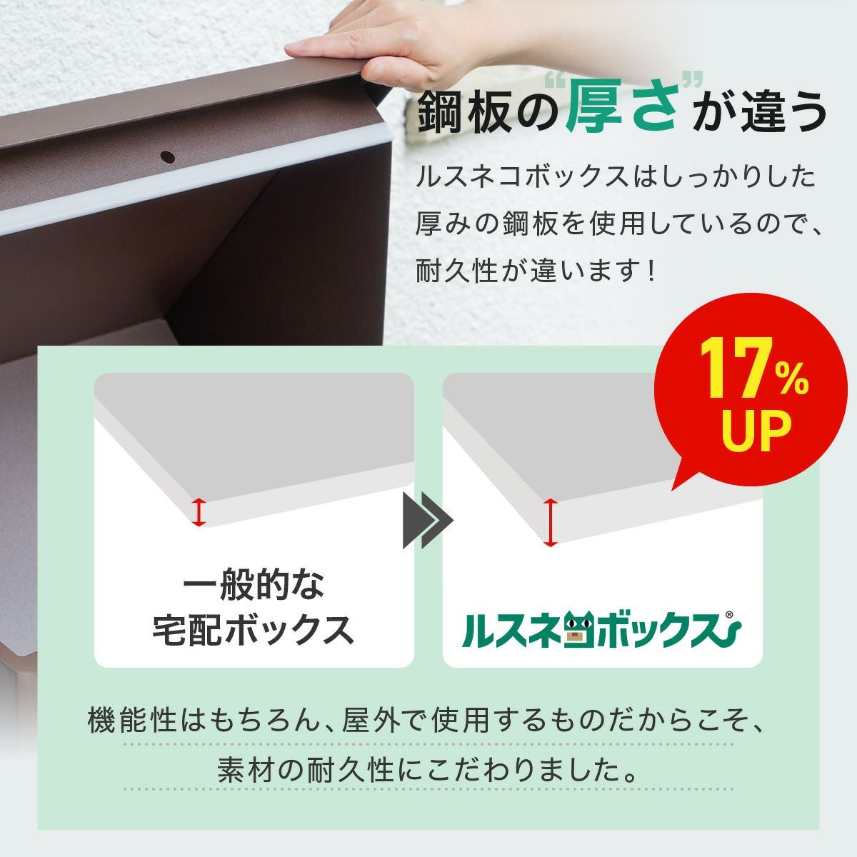 他の画像を見る 人気商品 8%OFF Premiumシリーズ ポスト付き 宅配ボックス ルスネコボックス Premium 通常価格 ¥ 86,020 のところ 販売価格 ¥ 39,541 税込 お気に入りに登録する