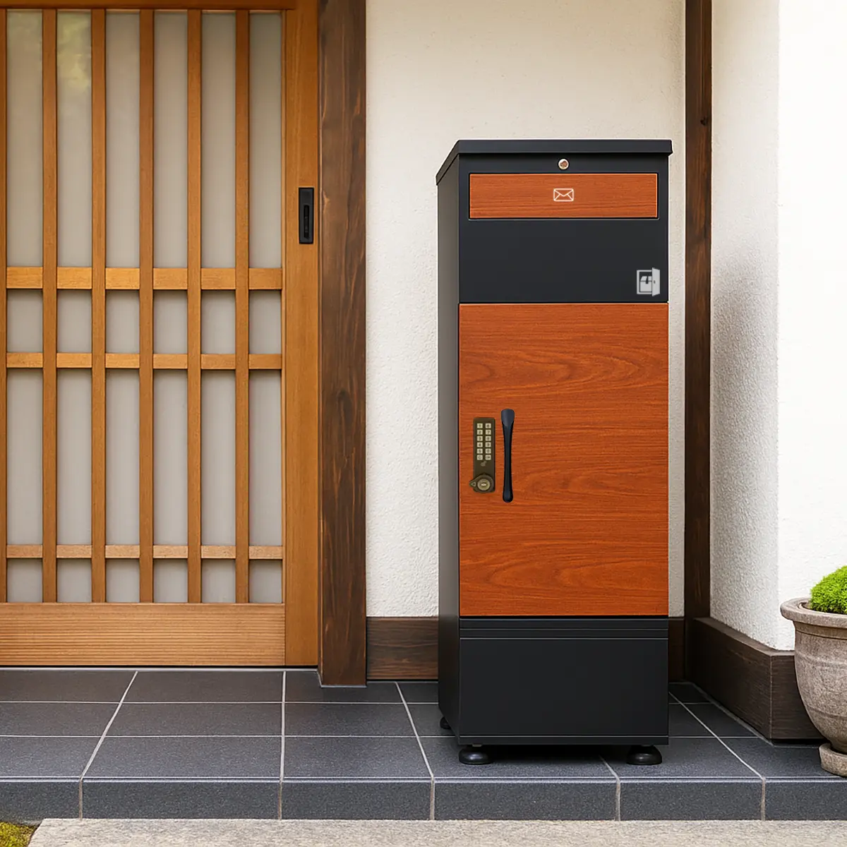 いちばん悩んだのは「宅配ボックスを床に固定せず置き設置で大丈夫か?」という点でした。 結果、我が家はまず置きっぱなしで運用を開始。 内部に重しを入れられる構造のおかげで安定感があり、日常的な風ではびくともしません。 設置場所は玄関の軒下。何度か強い雨もありましたが、投函物・荷物とも濡れずに受け取れており、「雨に強い」という評価どおりで安心感があります。 ポスト一体型なので、郵便物と宅配便の受け取りが玄関先で完結。 仕事や外出の予定を宅急便の時間に合わせなくてよくなり、再配達のストレスから解放されました。 見た目もシンプルで家の外観になじみ、扉の開閉もスムーズ。使い勝手・質感ともにプレミアムの名にふさわしいと感じています。 今のところは置き設置でまったく不安はありませんが、台風シーズンにはアンカー固定も視野に入れつつ運用予定。 総合的に「導入して本当によかった」と思える買い物でした。