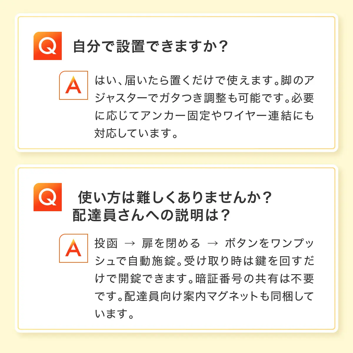 Premiumシリーズ デジタルキー ポスト付き 宅配ボックス ルスネコボックス Premium【専用ベースセット】 人気商品 8%OFF 通常価格 ¥ 110,000 のところ 販売価格 ¥ 50,563 税込 詳細を見る お気に入りに登録する