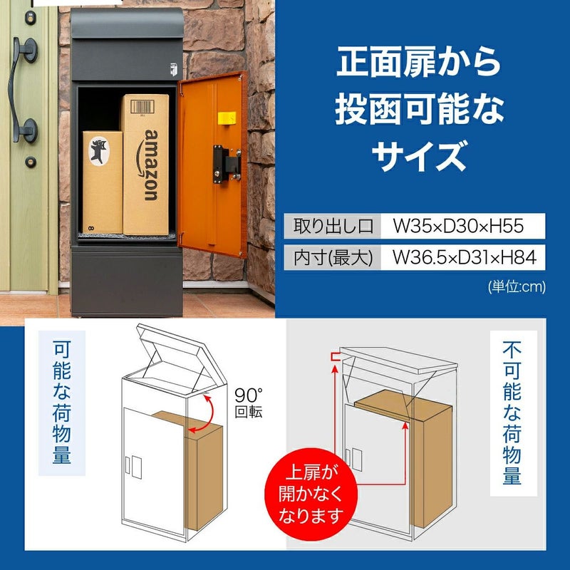 先日、玄関に設置しました。 届いた時はちょっと大きいかなと思いましたが、実際に使ってみると、どれだけ便利なのかがわかりました。 思っていたよりも大きな荷物が入ります。 作りがしっかりしていて、荷物をしっかり保管してくれるので、ネットでのお買い物が多い私にとっては、本当に心強いです。デザインもシンプルで、我が家の玄関にすっと馴染んで、見た目もスッキリしています。 以前は不在時の荷物受取りでいつも気をもんでいましたが、その心配が全くなくなりました。 これを選んで本当に良かったなと、毎日のように感じています。