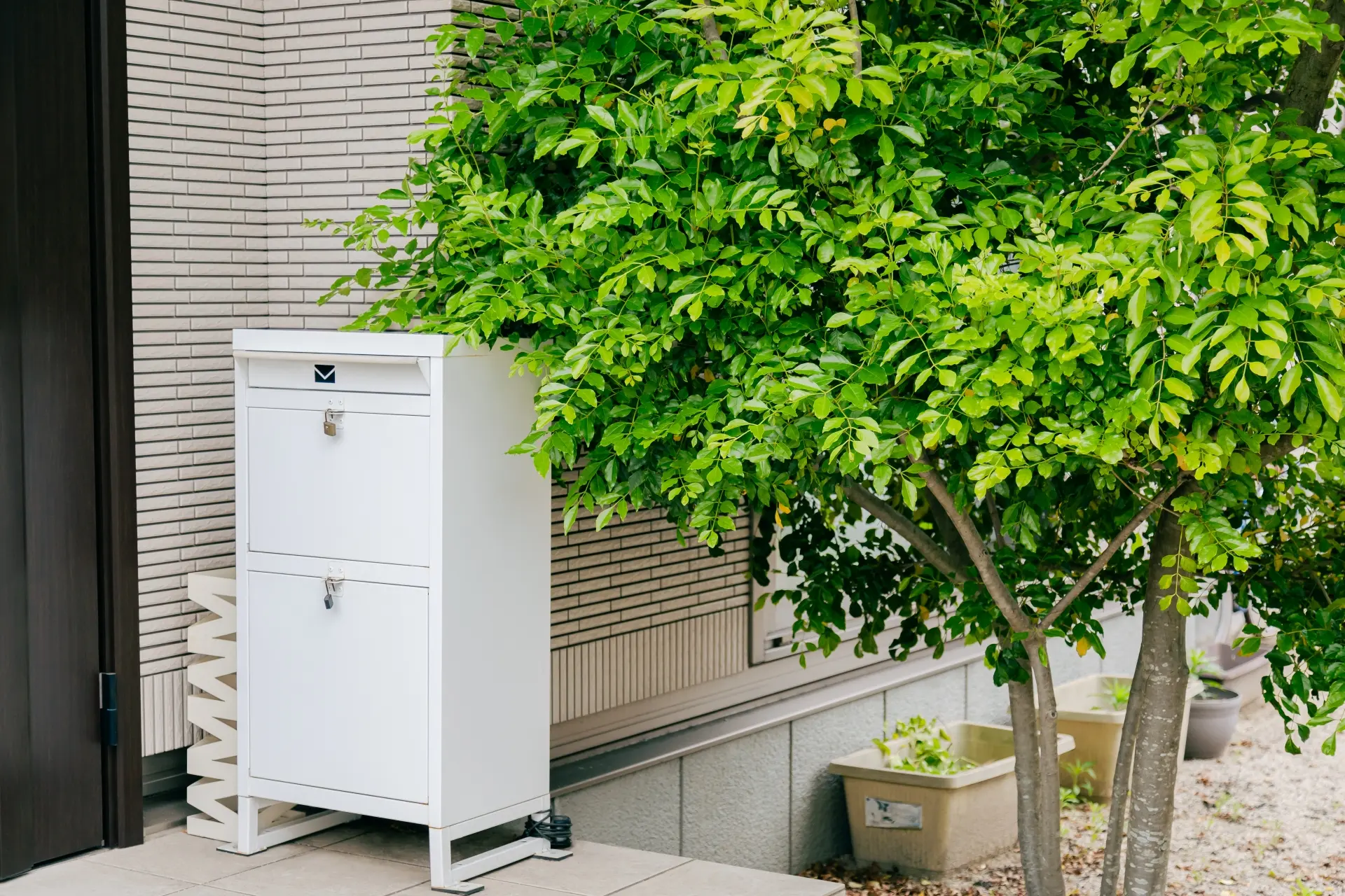 宅配ボックスとは、留守中でも安全に荷物の受け取りができるよう、住居の玄関先などに設置される鍵付きのロッカーや箱のことです。
